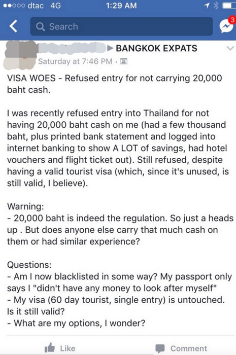 Thaivisa a appris que les fonctionnaires de l’immigration, à un certain nombre de points de contrôle frontaliers de Thaïlande, demandent à certaines personnes qui entrent dans le pays avec un visa de touriste de montrer 20 000 bahts en espèces.