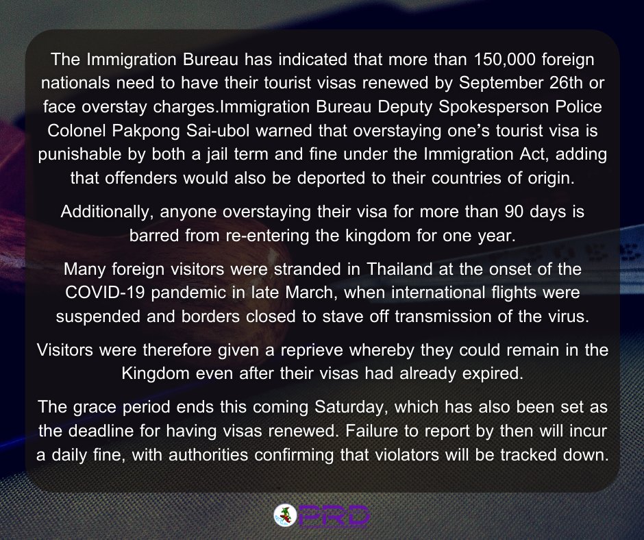 Royal Thai Immigration, quant à lui, a publié ce matin unes déclaration via ses chaînes de relations publiques, avertissant une fois de plus les 150000 étrangers estimés dans le pays que s’ils ne venaient pas à l’Immigration et ne réglaient pas leur situation de visa, ils seraient retrouvés et arrêtés. Les responsables de l’immigration et de la division des relations publiques du gouvernement thaïlandais ont publié l’avertissement ci-dessous: