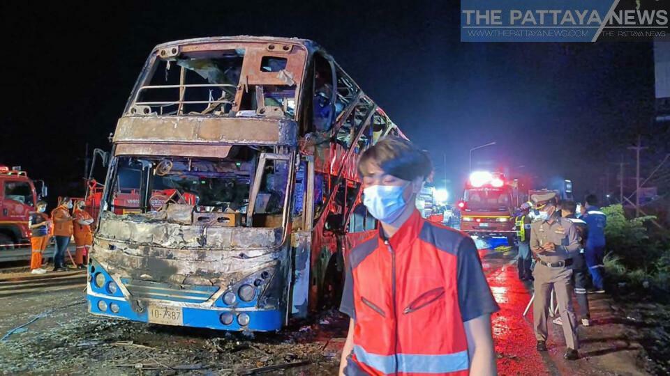 Cinq passagers ont été tués et 12 autres grièvement blessés après qu'un bus à deux étages se rendant à Bangkok a pris feu dans le district de Ban Haet, dans la province de Khon Kaen, vers minuit aujourd'hui, le 13 avril.