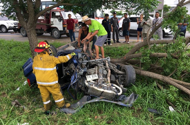 On regardant l’épave de cette voiture, on n’aurait jamais cru que le conducteur s’en sortirait indemne et sur ses pieds. Les faits se sont déroulés le 10 juin sur l’autoroute 36 entre Rayong à Pattaya
