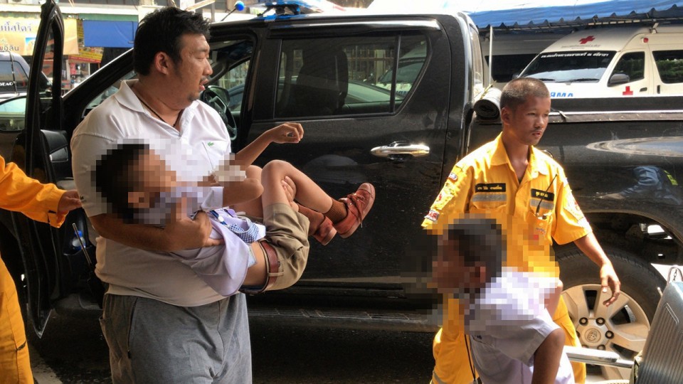 Six élèves du primaire ont été transportés d’urgence dans un hôpital local après avoir été mordus par deux chiens errants qui se sont précipités dans leur école du district de Si Racha, à Chonburi, ce 6 octobre, ils ont été blessé aux yeux, au visage, aux bras et aux jambes.